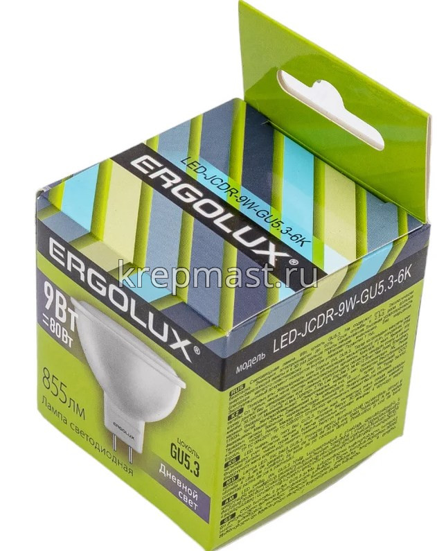 Лампа GU5.3 JCDR 9Вт 6000К - светодиодная лампа ERGOLUX может быть применена в жилых, офисных и производственных в помещениях, а также в уличных светильниках со степенью защиты не менее IP54.