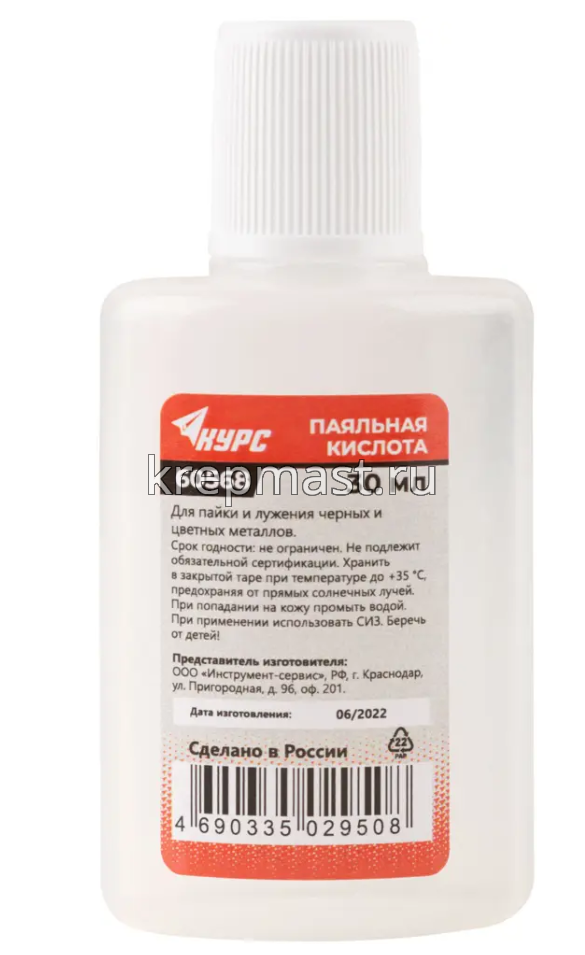 Кислота паяльная 30мл (высокоактивный флюс на основе хлористых солей цинка) в интернет-магазине «Мастер Крепежа» по цене 86 руб. Более 19 наименований товаров в наличии в категории Наборы для пайки. Купить кислота паяльная 30мл (высокоактивный флюс на основе хлористых солей цинка) в Лениногороск выгодно Вы можете on-line на нашем сайте, или отправив заявку по почте, а также по телефону или в пункте выдачи компании г. Казань, ул. Татарстан, 9, магазин "Мастер Крепежа". Доставка по Республике Татарстан и другие регионы РФ.