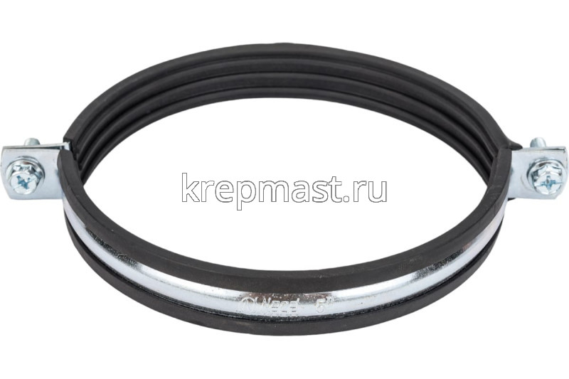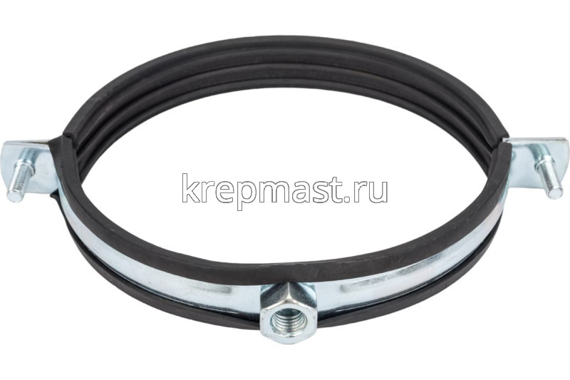 Хомут сантехнический с гайкой М10 134-143 мм представляет собой две металлические пластины, соединенные по краям регулировочными винтами м6 и резиновым уплотнителем. К хомуту приварена гайка м6 с метрической резьбой. Диаметр обжима трубы составляет от 134 до 143 мм. Изготавливается из оцинкованной стали толщиной 1.5 мм.