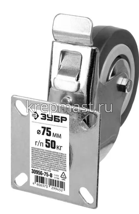 Колесо д. 75мм поворотное ЗУБР на площадке резина (г/п 50кг)