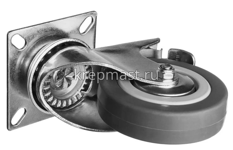 Колесо д. 75мм ПОВОРОТНОЕ ЗУБР на площадке резина (г/п 50кг)предназначено для удобного перемещения тележек и контейнеров легкой и стандартной грузоподъёмности, легковесного оборудования, строительных лесов и прочих конструкций. Применяется на любых типах покрытий. Возможно использование как внутри помещения, так и снаружи. Может использоваться в условиях повышенной влажности и слабых кислот. Колесо выполнено из серой резины, диск из полипропилена. Подшипник – скольжения.