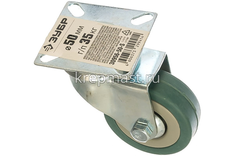 Колесо д. 50мм поворотное ЗУБР на площадке резина (г/п 35кг)