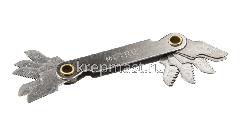 Шаблон для определения шага метрической резьбы STAYER PROFI 0,5-1,75 мм 28041 - приспособление, состоящее из 12 щупов, закрепленных в обойме. Шаг метрической резьбы: 0,5, 0,6, 0,7, 0,75, 0,8, 0,9, 1,0, 1,25, 1,5, 1,75 мм. Шаг трубной резьбы: 27, 28 TPI