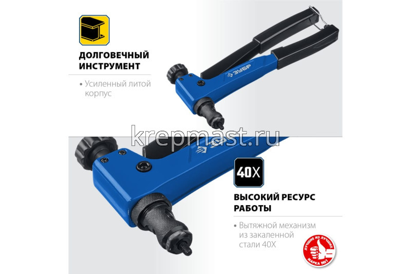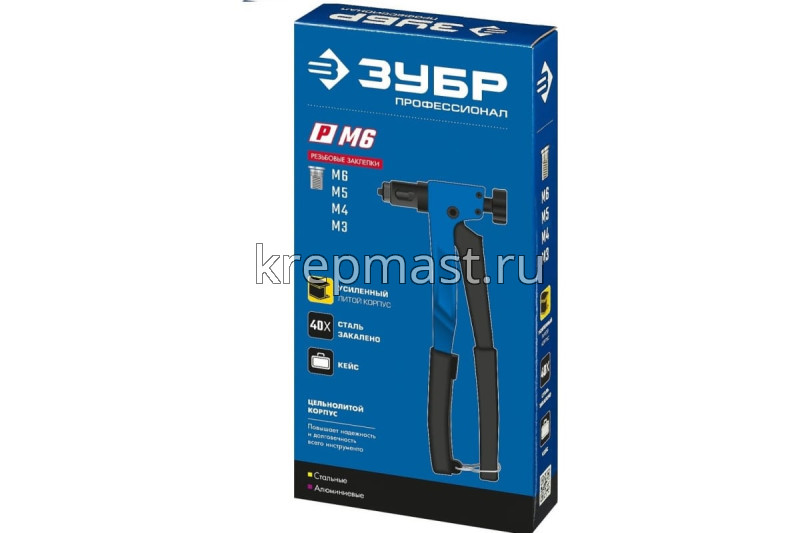 Заклепочник ЗУБР Р-М6 двуручный для резьбовых заклепок М3, М4, М5, М 6мм в интернет-магазине «Мастер Крепежа» по цене 3862 руб. Более 10 наименований товаров в наличии в категории ЗАКЛЕПОЧНИКИ. Купить заклепочник зубр р-м6 двуручный для резьбовых заклепок м3, м4, м5, м 6мм в Лениногороск выгодно Вы можете on-line на нашем сайте, или отправив заявку по почте, а также по телефону или в пункте выдачи компании г. Казань, ул. Татарстан, 9, магазин "Мастер Крепежа". Доставка по Республике Татарстан и другие регионы РФ.