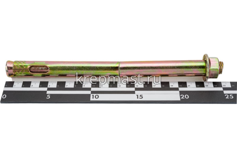 Анкер с гайкой 20 х 250 изготовлен из высокоуглеродистой стали со специальным цинковым покрытием и применяется для надежного крепления тяжеловесных конструкций к твердым основаниям из полнотелых материалов.