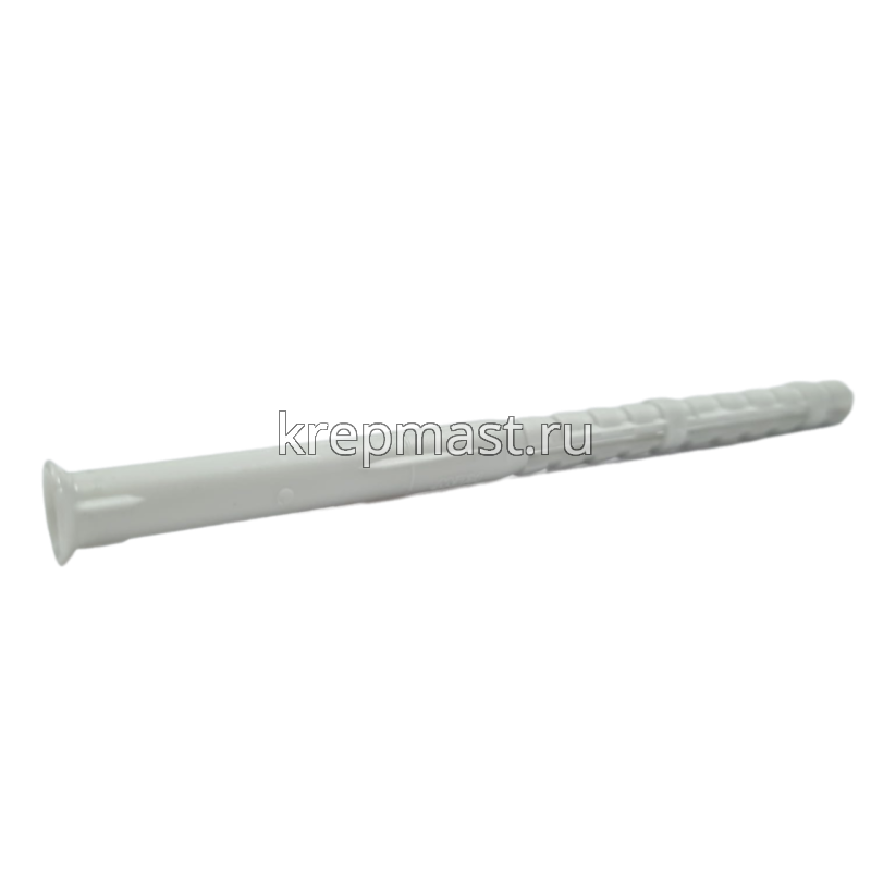 Фасадный дюбель (рамный) KEW 8 x 120 с двойной зоной распора используется для крепления ворот, дверных коробок, навесных шкафов, оконных блоков, фасадных и кровельных конструкций из дерева и металла к бетону, пористому бетону, пустотелым силикатным и керамическим кирпичам.