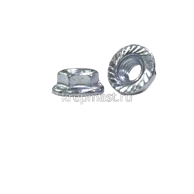 Гайка с фланцем М 4 DIN 6923 крепежный элемент, совмещающий в себе шестигранную гайку с одной стороны и фланец (плоскую деталь круглой формы) — с другой.