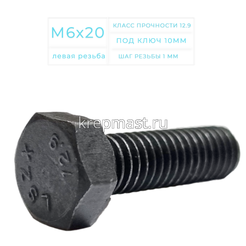 Болт М 6х 20 с ЛЕВОЙ РЕЗЬБОЙ классом прочности 12,9 черные DIN 933 используются в механизмах, где действуют поворотные нагрузки или в условиях высокой вибрации, например, для крепления лопастей вентилятора, педалей велосипеда или колес некоторых марок автобусов.