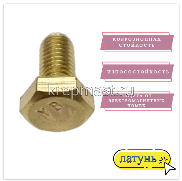 Болт 10х20 DIN 933 латунь в Лениногороск