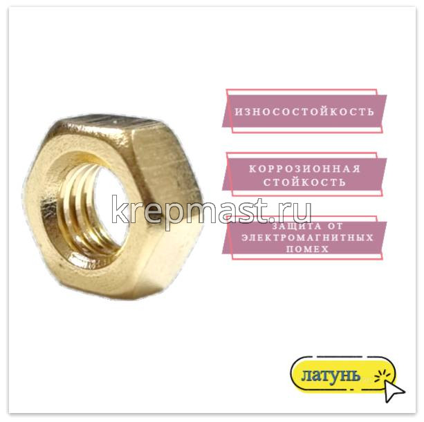 Гайка латунная не магнитится и служит для создания разъемных резьбовых соединений совместно с винтами, шпильками и болтами.