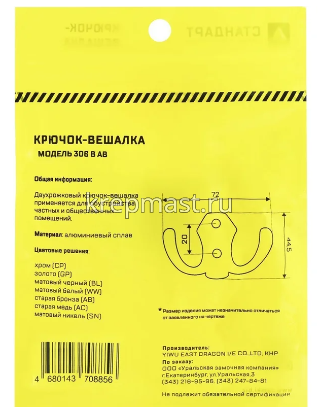 Крючок 306 В WW матовый белый СТАНДАРТ в интернет-магазине «Мастер Крепежа» по цене 120 руб. Более 12 наименований товаров в наличии в категории Крючок-вешалка. Купить крючок 306 в ww матовый белый стандарт в Лениногороск выгодно Вы можете on-line на нашем сайте, или отправив заявку по почте, а также по телефону или в пункте выдачи компании г. Казань, ул. Татарстан, 9, магазин "Мастер Крепежа". Доставка по Республике Татарстан и другие регионы РФ.