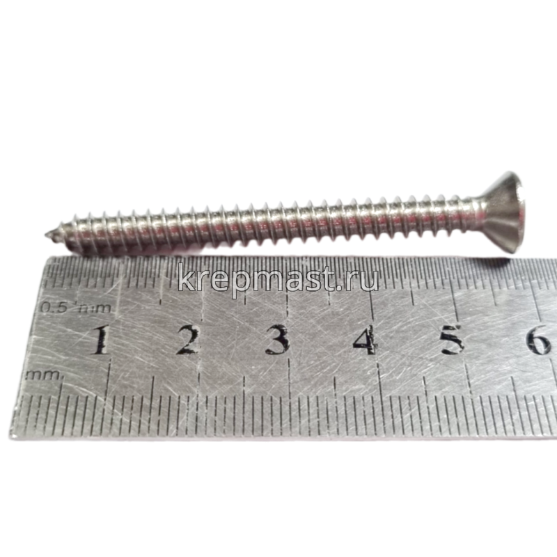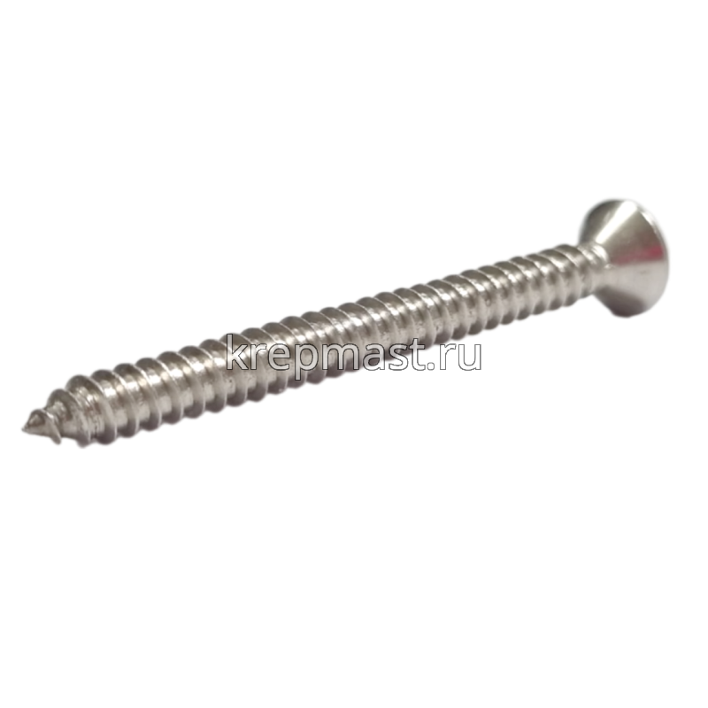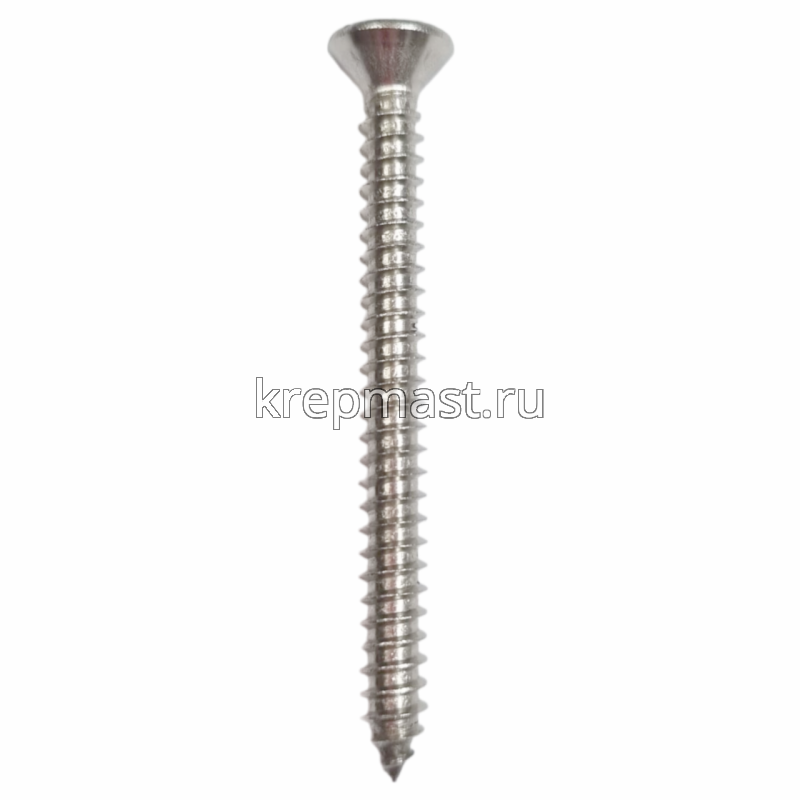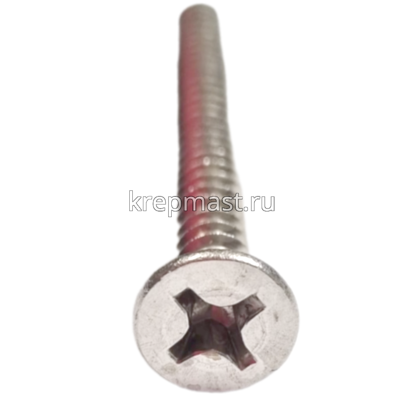 Саморез нержавеющий по металлу с потайной головкой и острым концом DIN 7982 5.5 x 60 А2 применяется для крепления стальных и других листовых материалов (дерево, фанера) к металлическим и деревянным несущим конструкциям.