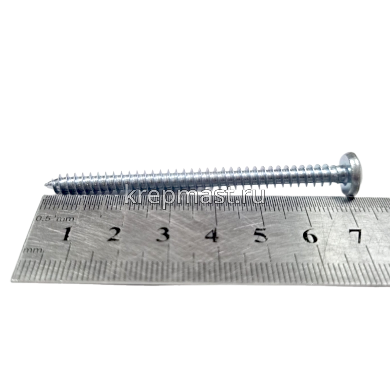 Саморез по металлу с полусферической головкой и острым концом DIN 7981 5.5 x 70 применяется для крепления стальных и других листовых материалов (дерево, фанера) к металлическим и деревянным несущим конструкциям.