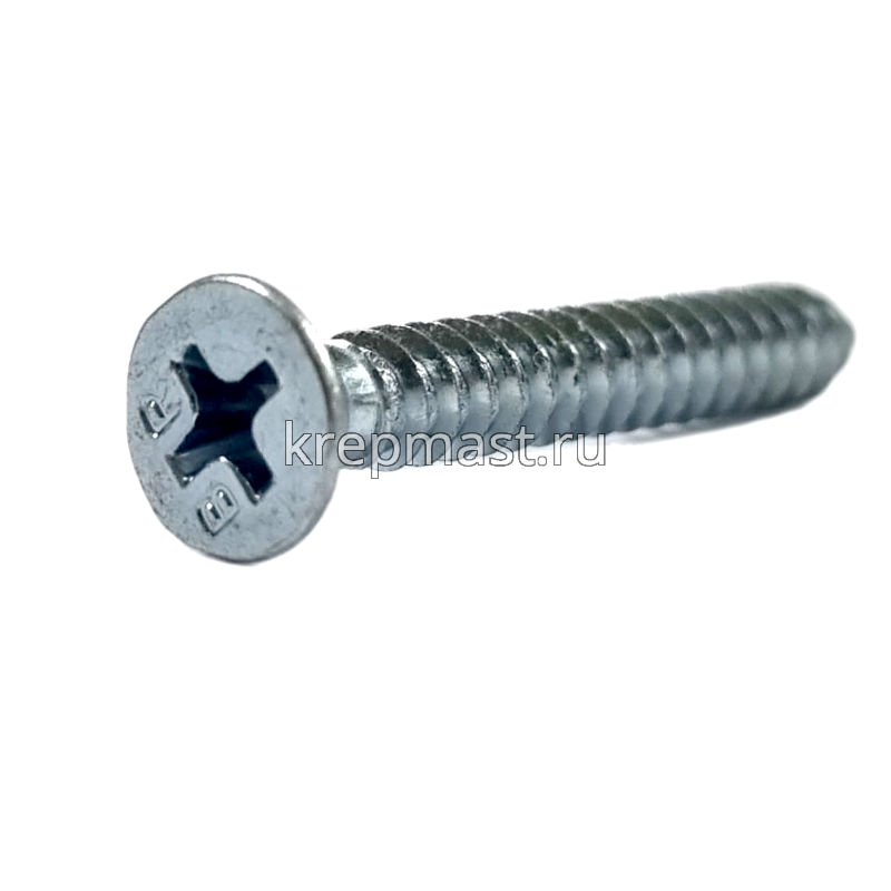 Саморез по металлу с потайной головкой и острым концом DIN 7982 4.2 x 32 применяется для крепления стальных и других листовых материалов (дерево, фанера) к металлическим и деревянным несущим конструкциям.
