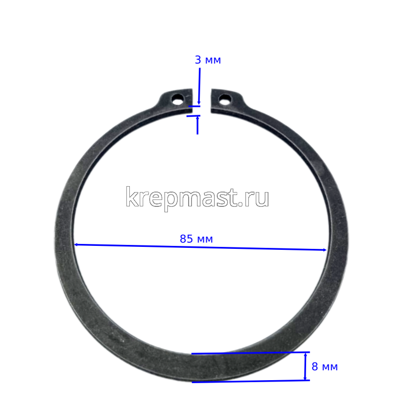 Кольцо пружинное упорное на вал DIN 471 М85 предназначено для фиксации различных деталей на валу, оси или штоке. Стопорная шайба Выполнена в виде разомкнутого кольца с расплющенными кончиками, оснащенными отверстиями.