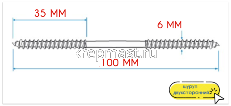 Шпилька сантехническая (шуруп двухсторонний) 6х100