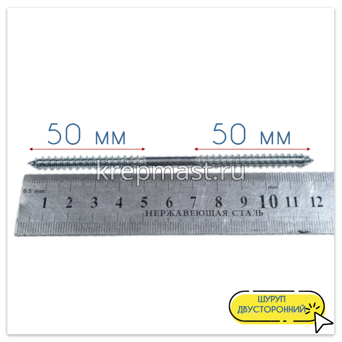 Двусторонний шуруп изготавливается из высококачественной инструментальной стали марки С10008. Для защиты от негативного воздействия влаги и появления коррозии, саморез с двухсторонней резьбой покрывается тонким слоем белого цинка (горячее цинкование).