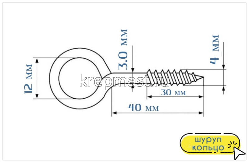 Шуруп-кольцо 4,0х 40 в интернет-магазине «Мастер Крепежа» по цене 11 руб. Более 25 наименований товаров в наличии в категории Шуруп - кольцо. Купить шуруп-кольцо 4,0х 40 в Лениногороск выгодно Вы можете on-line на нашем сайте, или отправив заявку по почте, а также по телефону или в пункте выдачи компании г. Казань, ул. Татарстан, 9, магазин "Мастер Крепежа". Доставка по Республике Татарстан и другие регионы РФ.