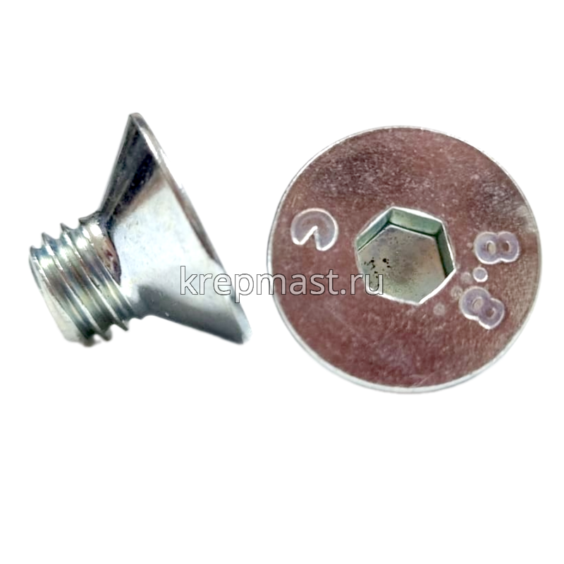 Винт с потайной головкой и внутренним шестигранником DIN 7991 М8 х 10 классом прочности 8.8 применяется в качестве деталей соединенияв машиностроении, станкостроении, строительстве. Такой высокопрочный винт устанавливается для крепления в зенкованное отверстие с метрической резьбой в любые металлы и твердые пластмассы.