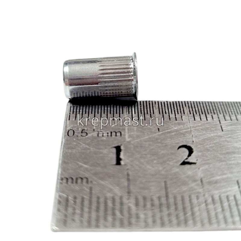 Клепки резьбовые c уменьшенным бортиком М5 изготавливают из прочной и устойчивой к воздействию коррозии оцинкованной стали.