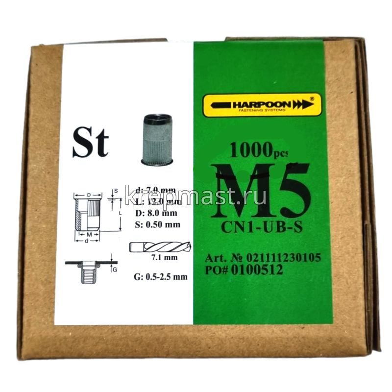 Гайка-заклепка HARPOON М 5 х 12мм CN1-UB-S уменьшенный борт, первая длина