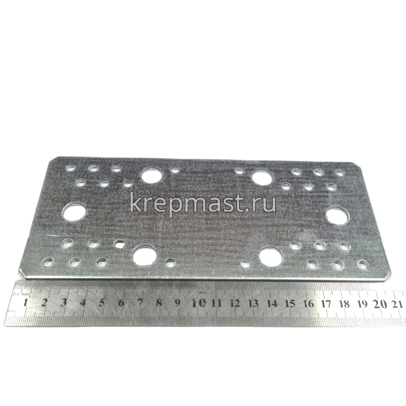 Крепежная пластина LP6 210x90x2,5мм применяется для соединения и упрочнения конструкций при помощи нескольких дюбелей, анкеров, саморезов.