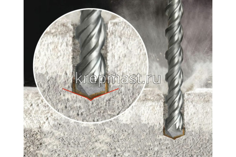 Бур SDS+ 4 х 110мм рассчитан на использование на средних и тяжелых перфораторах ударного действия с зажимом SDS-plus.