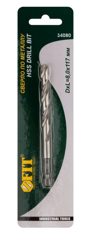 Сверло по металлу 8,0 мм хвостовик под биту изготовлено из усиленной полированной быстрорежущей стали (Р6М5). Данная оснастка имеет шестигранный хвостовик под биту 1/4", покрытая никелем. Такое сверло надежно крепится к инструменту и служит долго.
