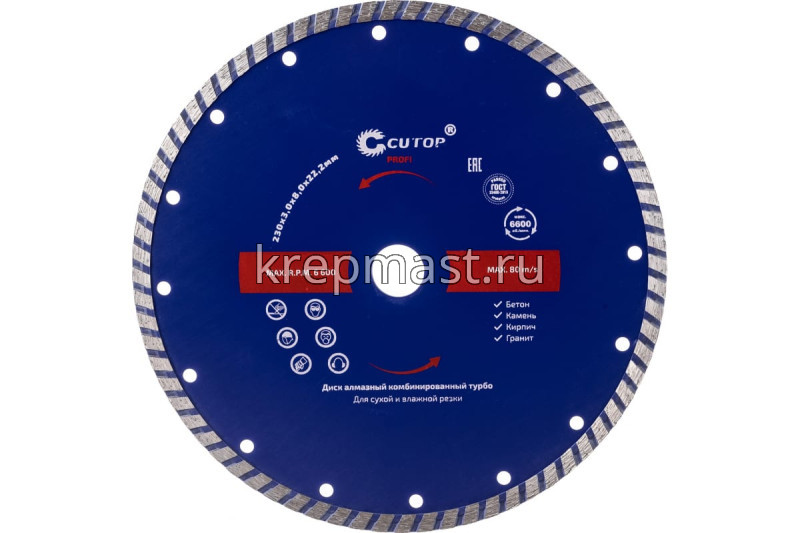Диск алмазный 230 х 22 турбо в интернет-магазине «Мастер Крепежа» по цене 1591 руб. Более 9 наименований товаров в наличии в категории Диск алмазный турбо /для сухой и мокрой резки. Купить диск алмазный 230 х 22 турбо в Лениногороск выгодно Вы можете on-line на нашем сайте, или отправив заявку по почте, а также по телефону или в пункте выдачи компании г. Казань, ул. Татарстан, 9, магазин "Мастер Крепежа". Доставка по Республике Татарстан и другие регионы РФ.