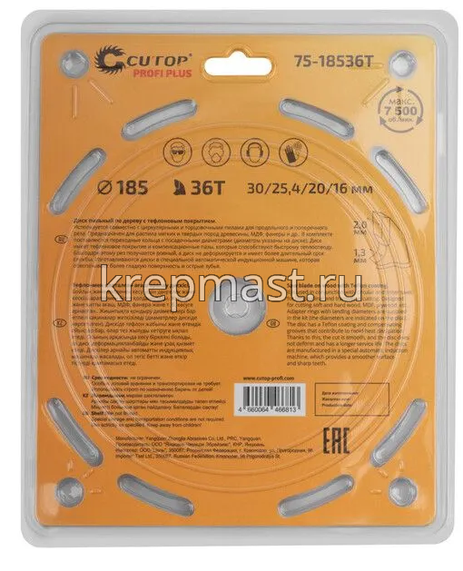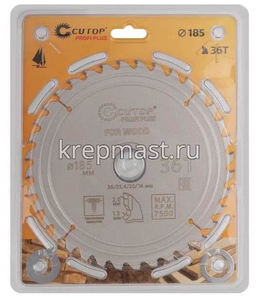 Диск пильный дерево 185х 36х30/25,4/20/16 CUTOP используется совместно с циркулярными и торцовочными пилами для продольного и поперечного реза. Предназначен для распила мягких и твердых пород древесины, МДФ, фанеры.