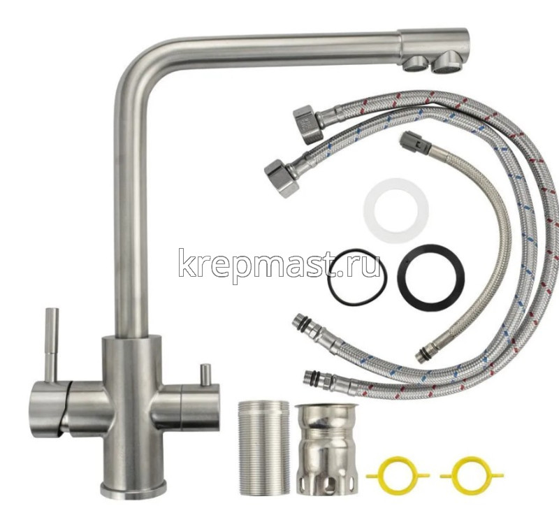 Смеситель для кухни MAGNUS 91122 с Г образным гусаком для питьевой воды -стильный одноручковый смеситель для кухни из нержавеющей стали с высоким изливом прекрасно подойдет для мойки любого размера.